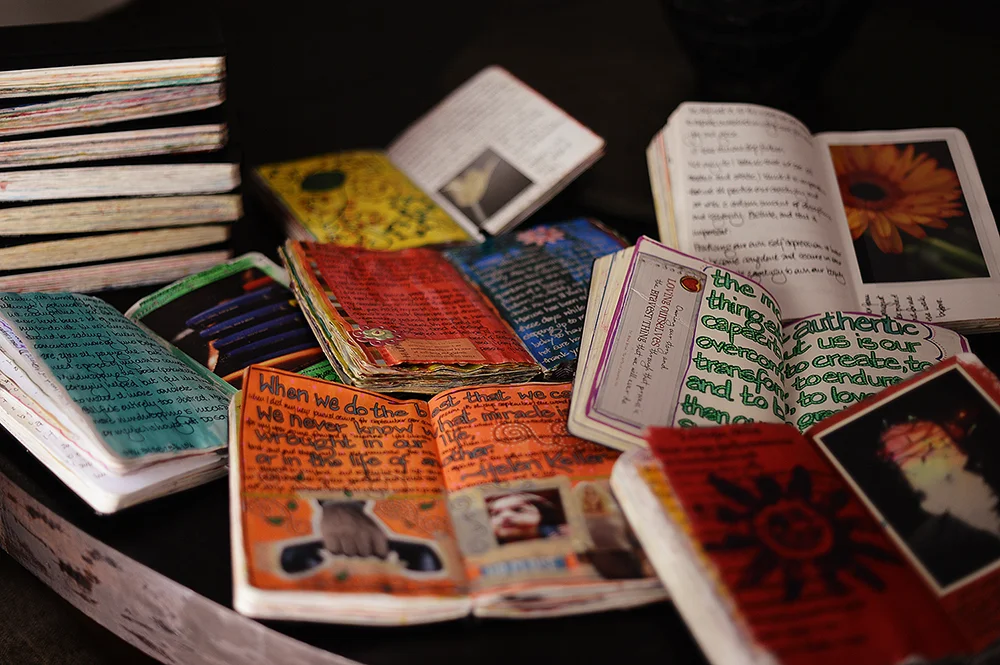 It's an intriguing thought, and one that I tend to believe. When I first started journaling about 7 years ago, my goal was, originally, to become a prolific diarist: my ritual was to do something in my journal once a day, at least 5 days a week. And this week, in preparation for an upcoming presentation, I went through my old journals for the first time since ... well, ever. I was surprised to discover that over the last 7 years, I've created over 35 journals, filled with colour and imagery and thoughts and words ...