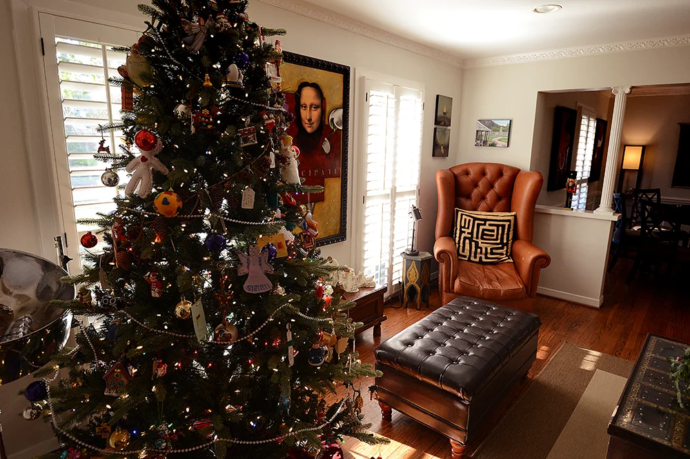 This afternoon, I walked through our living room and noticed that even though the sun was streaming through our windows, the lights were still bright on our tree (I leave our tree on all day long). I couldn't help it: I smiled. I love how our living room looks at Christmastime.