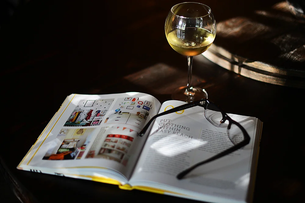 This past Sunday, I walked through my living/dining area, simply straightening up, and I noticed the light. I know that Sunday evenings tend to bother a lot of people -- I assume because it hints at an impending Monday morning -- but I've always found them lovely and slow, and the light was so inviting, that I decided to grab a book (in this case, Gabrielle Blair's beautiful new book, Design Mom) and a glass of wine, and just sit in its glow for a while.