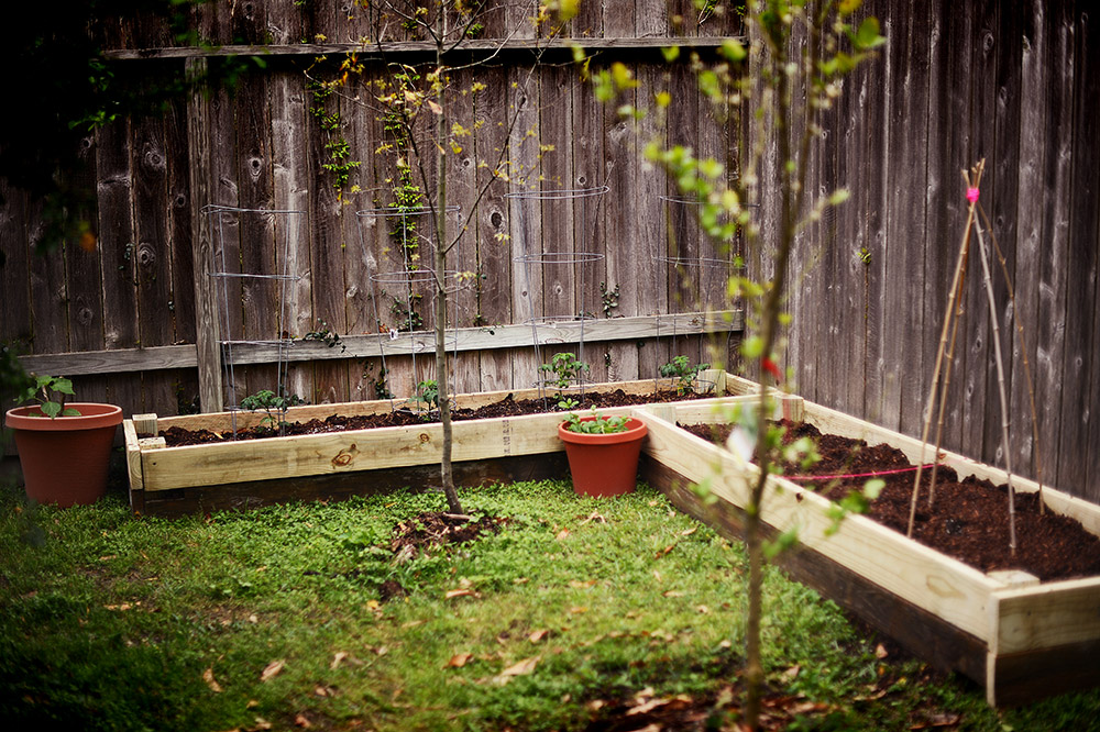 And so, this past weekend, Marcus built a couple of beds in our back yard (using a bit of reclaimed wood we had lying around), and we planted.