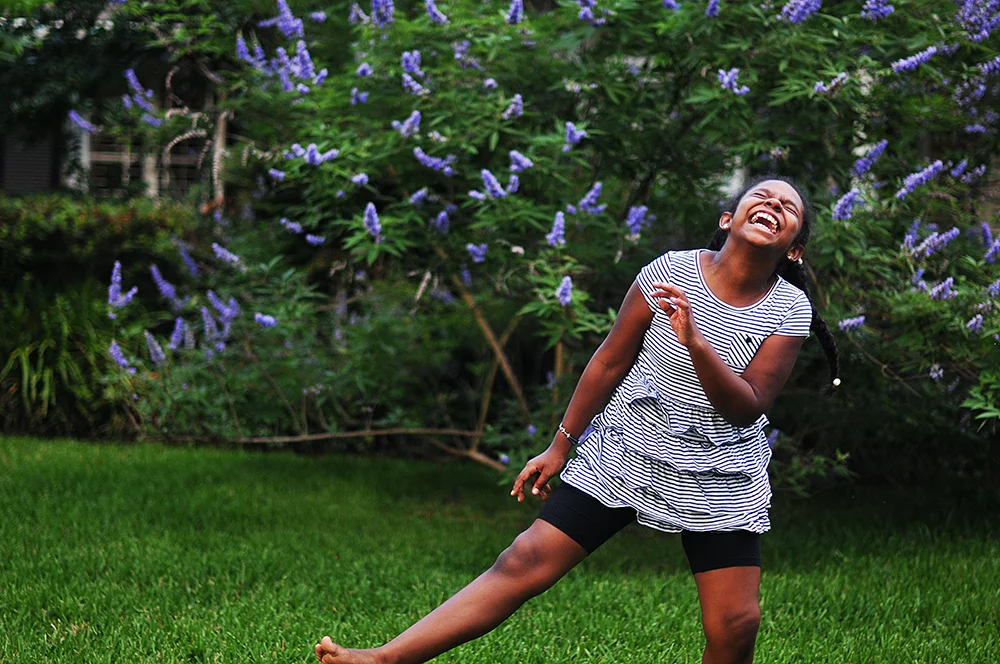 I pointed my camera at her and started shooting, thrilled at her spontaneous exuberance. I need to take a lesson from this, I thought. I need to take the time to notice happy.