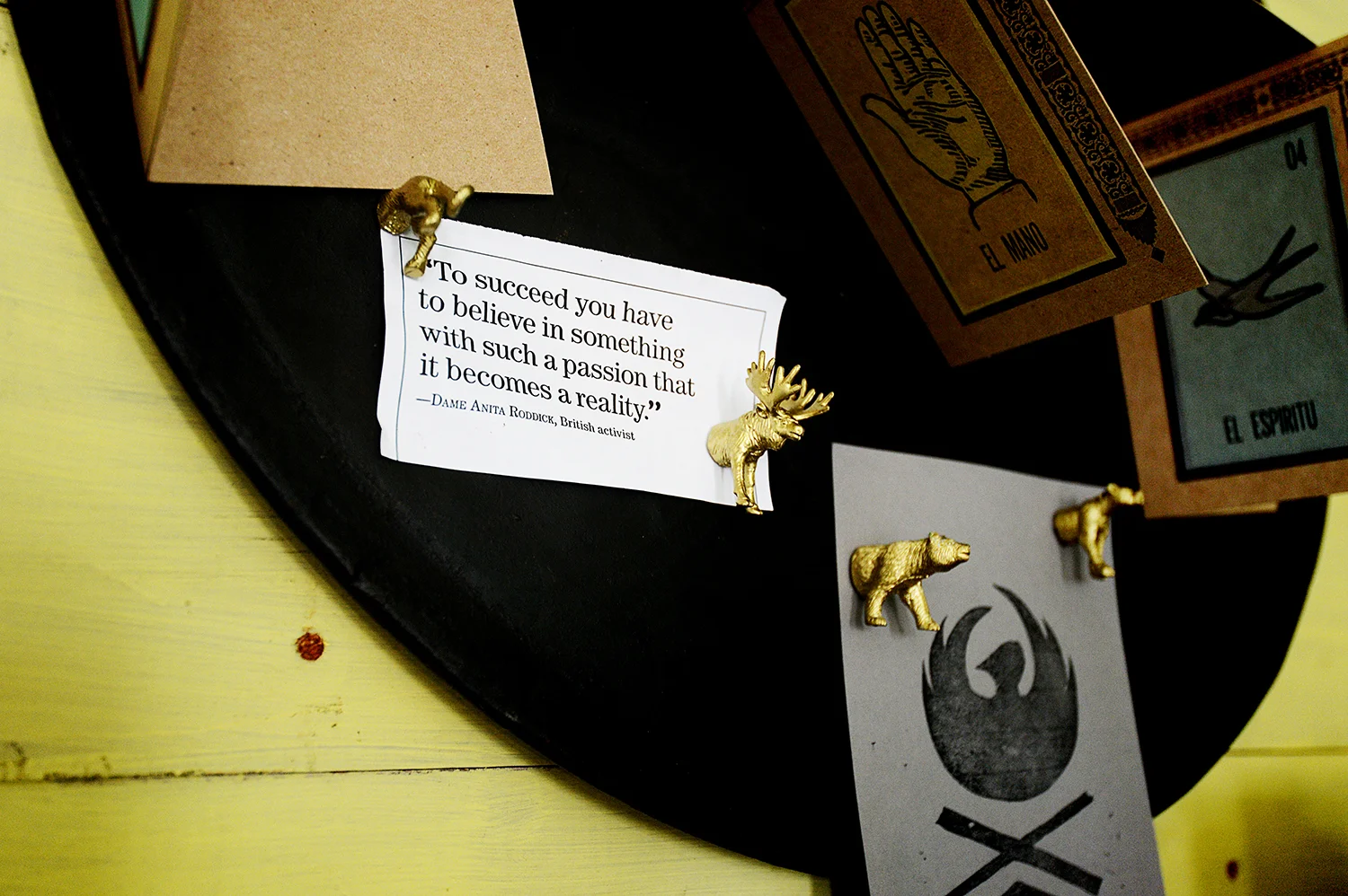 I also took the photo above at the Stash Factory the day I interviewed her. I admit it might not technically be an outtake, because I may actually use it in the book. But I just loved the quote, and it needed to be shared with you today.