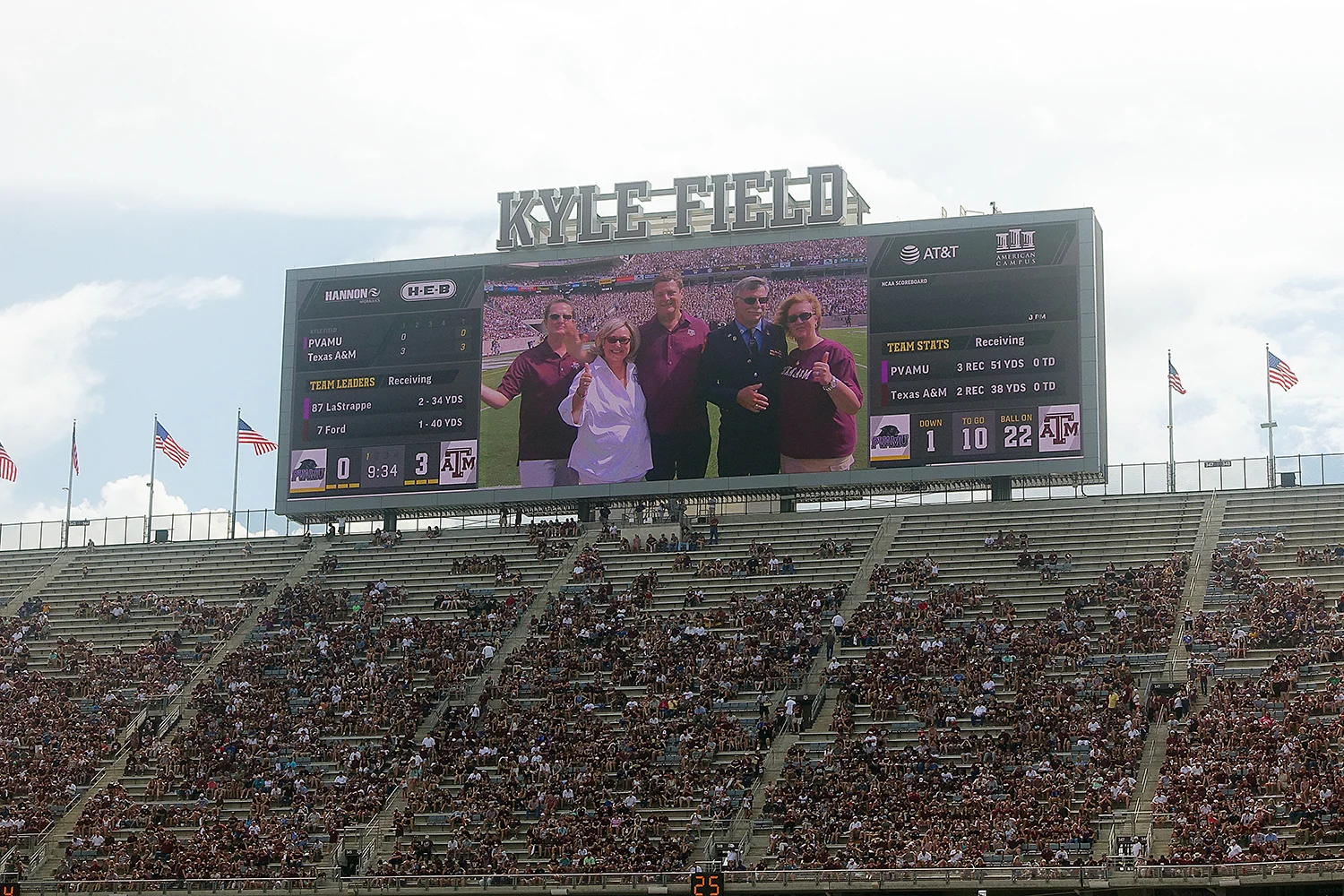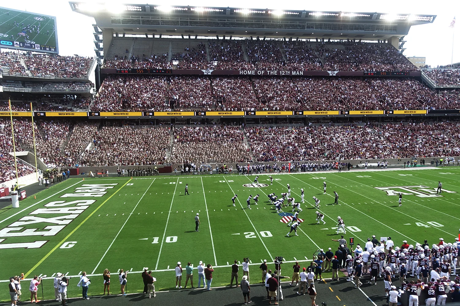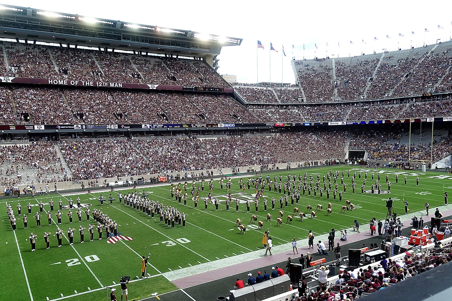 Kyle Field is the name of the university's football stadium. At capacity, it holds about 100,000 people, and is the fourth largest stadium in the United States -- which really, is just insane.