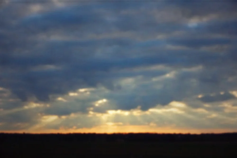 This past weekend, Marcus, Alex and I made a quick run up to Austin on an errand, and on the way back I noticed that the setting sun's rays were peeking through the clouds. I wanted to grab a shot, and in my hurry to capture it before the clouds moved, the first shot I took was completely out-of-focus -- although the second and third shots were fine.