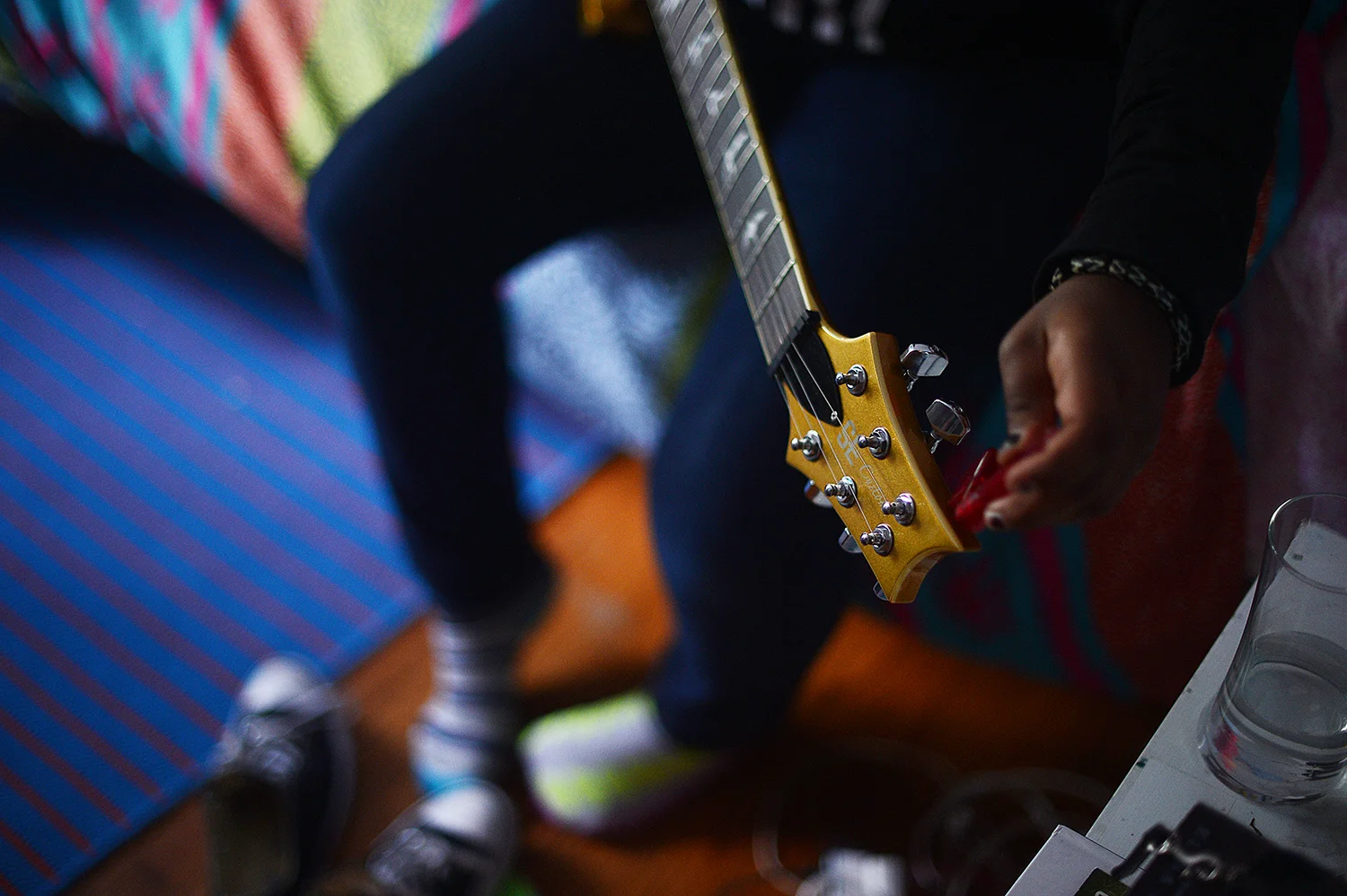 "Of course I can string my own guitar, Mom," she said, suppressing an eye-roll. "Every guitar player can. Or they should."