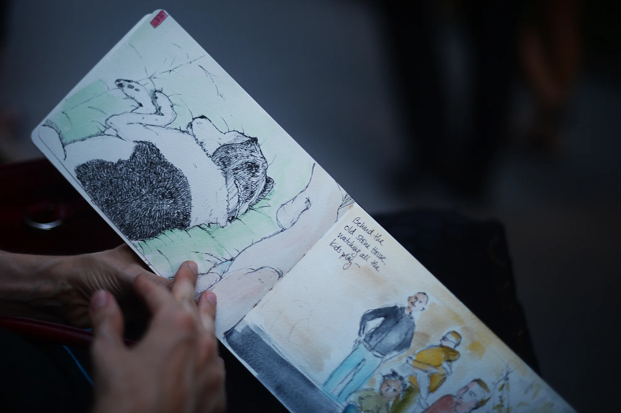 Flipping through my friend Alice's gorgeous sketch book on the High Line in New York City, July 2012.