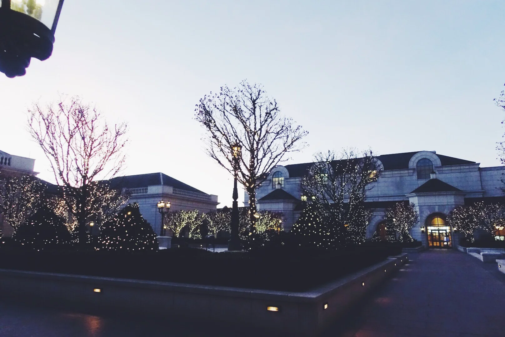 I meant to sleep in on Thursday morning, but since my body was still on Central Time, I woke up unreasonably early. It was pretty to still see the night twinkle lights on the trees at the Grand America still on, though.