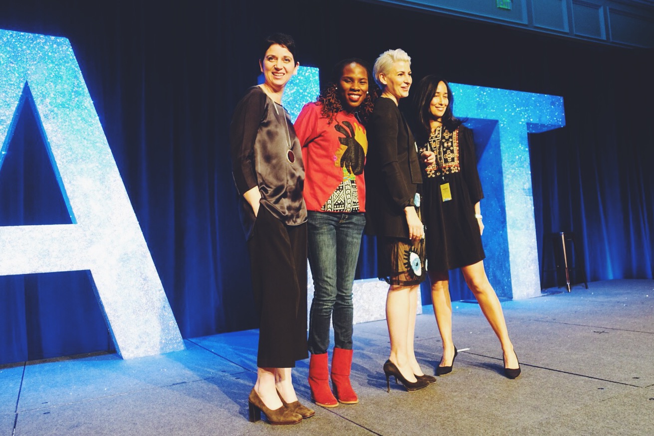 Gabrielle, with opening keynote speakers Luvvie Ajayi, Jihan Zencirli and Mariam Naficy. Not pictured: Sarah Michelle Gellar.